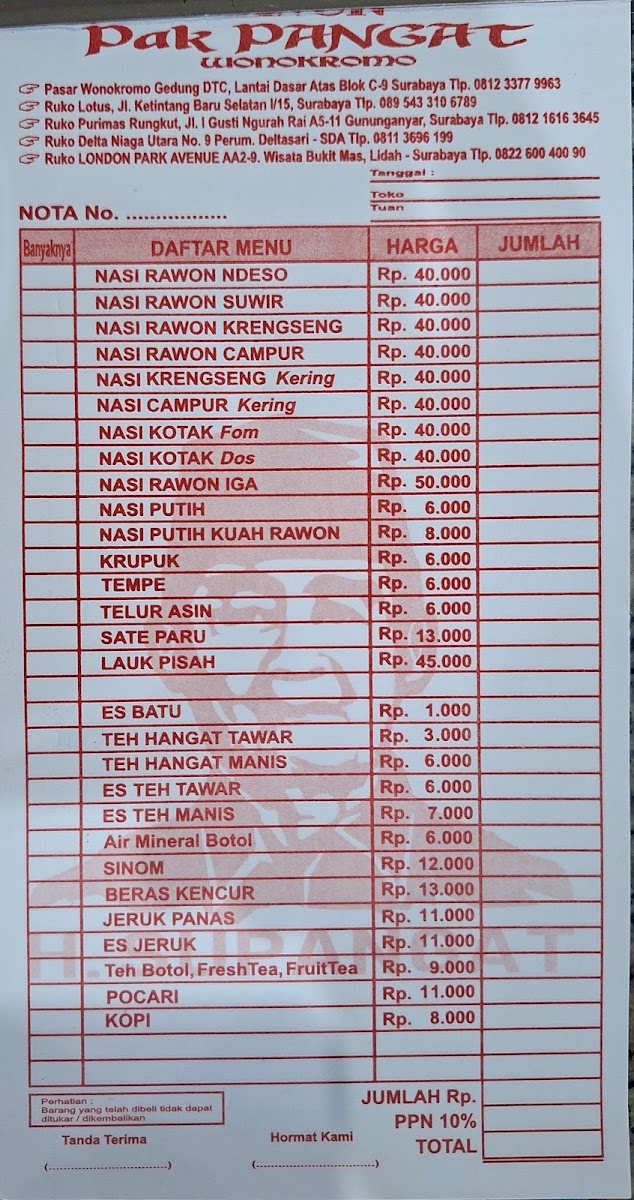 For anyone in Surabaya yearning for authentic flavors and a cozy, bustling atmosphere, make sure to stop by Rawon Pak Pangat. Whether you're a lifelong fan of this beloved dish or a curious newcomer, your taste buds are in for an unforgettable treat.